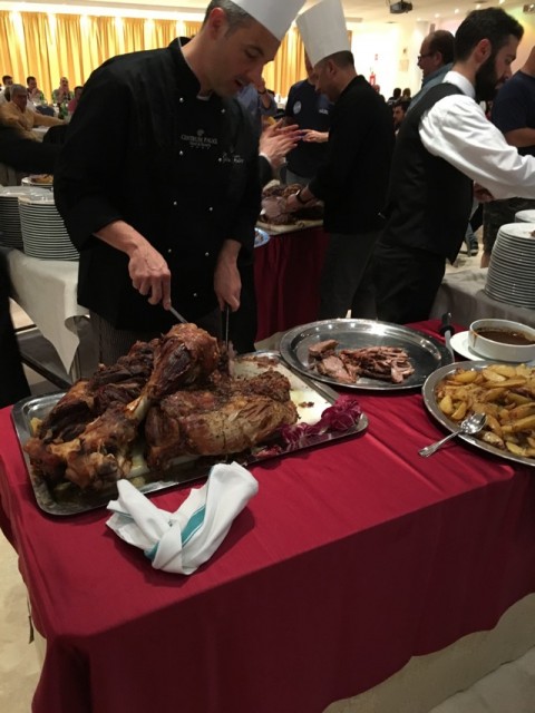 A ruota sono seguiti due primi, un ricchissimo secondo di arrosti, frutta e dolci. Ah, povero me!
