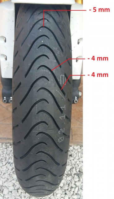 Anche secondo me lo "sbisciamento" dell'anteriore alle bassissime velocità è dovuto al disegno del battistrada che ha una profonda scanalatura.