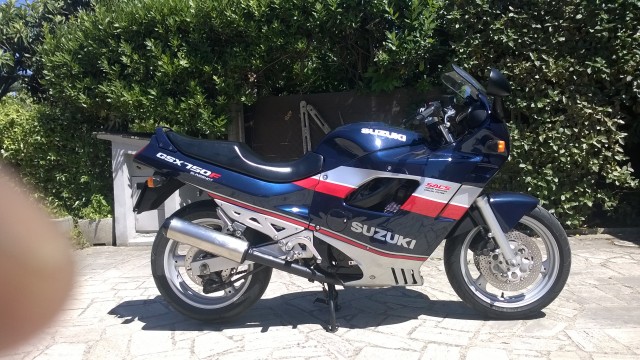 Mi chiamo Stellario, vivo nel Lazio e precisamente a Latina. Sono sposato e ho tre figli, Simone, Matteo e l'ultima arrivata Irene di 7 anni. Possiedo una Gsx 750f immatricolata nel 1989 che ad oggi ha percorso appena 31mila km. Ho deciso di iscrivermi al Vs sito per condividere con Voi il recentissimo restauro completo effettuato nonostante non ne avesse bisogno. All'ultimo tagliando di Aprile mi sono accorto di alcune fratture strutturali sulle carene in prossimità degli attacchi e ho deciso di procedere al ripristino. Mi sono fatto un po' prendere la mano e devo dire che il giochino è diventato abbastanza oneroso ma alla fine sono contento del risultato ottenuto che mi ha coinvolto in prima persona. Infatti a parte la verniciatura che è stata fatta da un carrozziere artigiano, tutta la preparazione, saldature interventi con la vetroresina, sistemazione dei serbatoi con la tankerite (ne ho due) applicazione degli adesivi ecc ecc sono tutti stati effettuati da me personalmente.