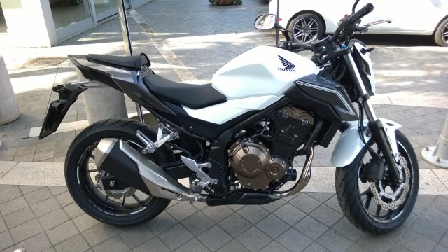 Sono Marco di Roma e ho 36 anni, dopo alcuni anni di scooter (Honda PCX 125 e Honda Forza 300) e una precedente breve parentesi un po' di anni fa con una Suzuki GSR600, ho preso la patente A3 da 5 mesi ed ho acquistato una piccola Honda CB500F my16 bianca.