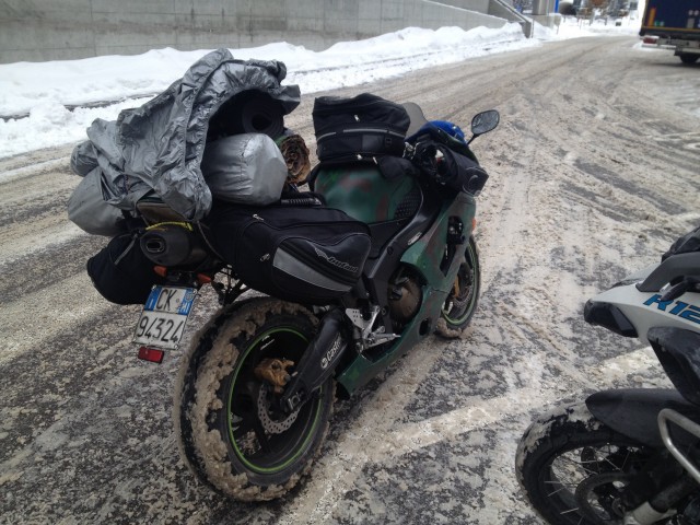 Ovviamente, per chi volesse entrare in buca con la moto senza avere gomme tassellate, è necessario avere catene o chiodi per avere trazione. Tuttavia, per chi la moto la lascia fuori (cosa che con due ruote a mio parere conviene), non è necessario avere alcunché.