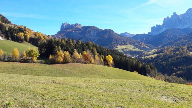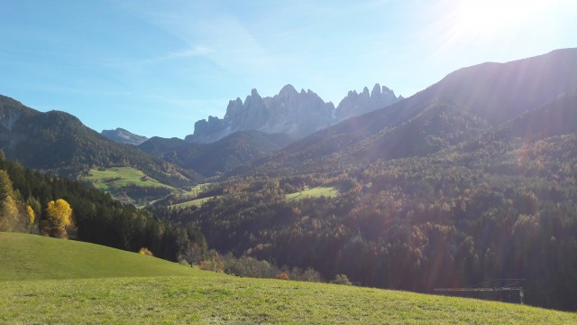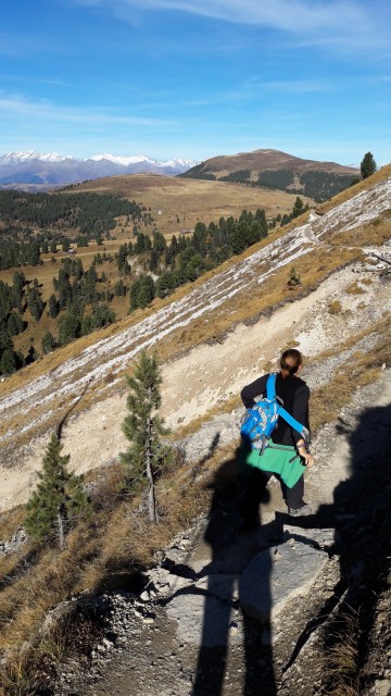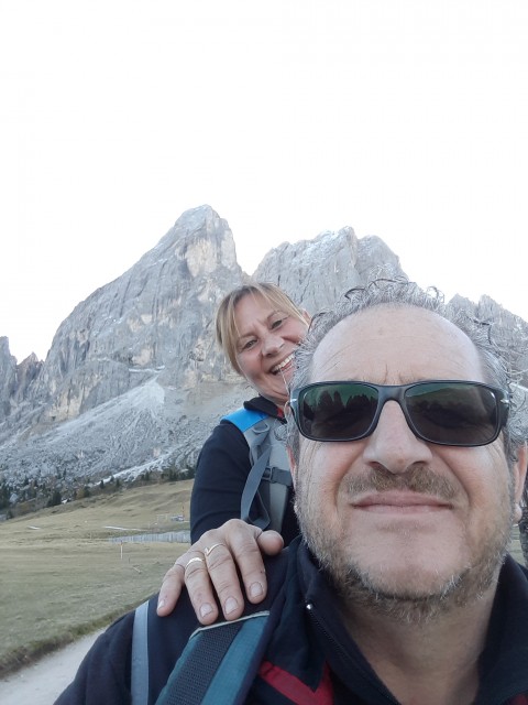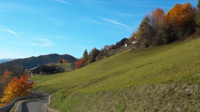 Non me lo aspettavo proprio un 1. Novembre cosi soleggiato ed ancora con temperature acettabilissime! C'erano 15 gradi (al sole) sul passo delle Erbe. Per fortuna la dolce meta' era d'accordo di far un'ultima uscita dolomitica a due ruote