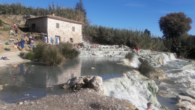 Passata Tuscania abbiamo poi proseguito per le bellissime stradine provinciali che portano prima a Canino e poi a Manciano, da qui in poi si prosegue dritti fino a Saturnia dove abbiamo fatto la seconda, e bellissima sosta alle cascate del mulino, famose per le sue acque termali calde, io personalmente ne avevo soltanto sentito parlare ma non c'ero mai stato e devo dire che in questo periodo con il vapore caldo che sale dall'acqua assumono davvero un tratto affascinate!