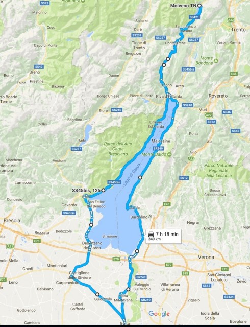 Una volta a Riva del Garda, prendo la gardesana occidentale poi, una volta a Desenzano, via dritti verso casa.
