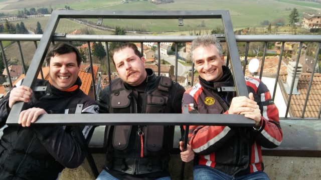 Io sto viaggiando "a vista", il navigatore mi si è incasinato, non lo seguo e conoscendo un pochino le zone conduco tutti per la strada giusta, fino a Vignale Monferrato, dove decidiamo di fare una pausa in piazza ma, aimè, nei vicoletti del paesello il gruppo si divide, metà mi seguono su in piazza, l'altra metà non si accorgono della deviazione e proseguono ... per fortuna con loro c'è l'amico PJ55 (Piero), anche lui dotato di navigatore, che ferma il gruppo e ci aspetta
