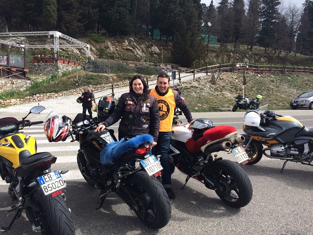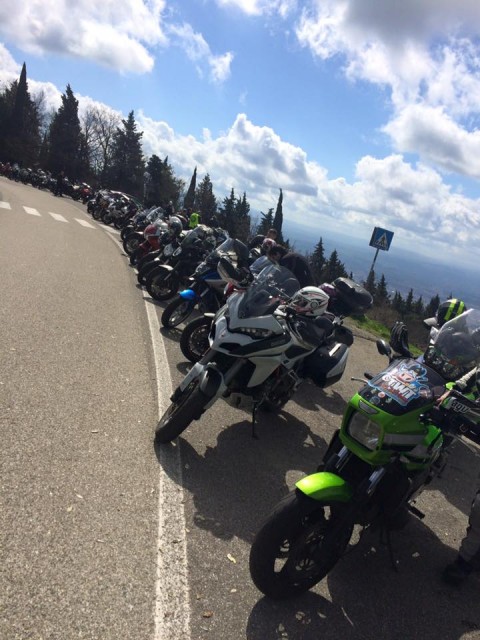 Sono pure veloci quindi è impensabile andarli a riprendere! Anche il resto del gruppo prosegue per la statale 65 finché non incrociamo il motogiro del raduno appena partito dal camping. Una sosta, un'occhiata di intesa, lasciamo sfilare il gruppo e ci uniamo a loro. Non avevamo ancora fatto abbastanza curve: passando da Pian del Voglio, Montefredente e San Benedetto Val di Sambro raggiungiamo il passo della Raticosa, meta prediletta dei bikers emiliani e toscani. Il piazzale è gremito di moto e noi contribuiamo ad aumentarne il numero. Scesi dalla moto si incontrano amici da tutta Italia ed è un continuo salutarsi: amo la moto e il Ting'avert anche per questo!
