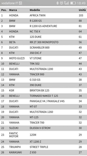 No, bhe, chiaramente il concetto dei numeri che suggerisce Tribalfazer è legato al segmento di appartenenza nel quale la Trk ha velocemente scalato la classifica mentre la Versys stenta a decollare.