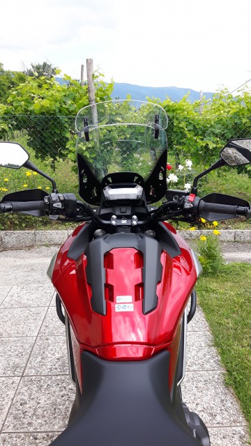 Dal punto di vista funzionale, eccellente come lo era sul Varadero. A spoiler abbassato l'aria mi arriva appena sopra gli occhi con lievi turbolenze, a spoiler tutto su tocca appena la parte alta del casco, si può viaggiare tranquillamente a visiera aperta, nessuna turbolenza.