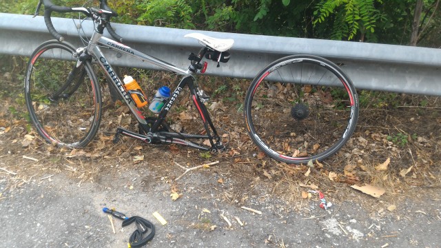 A metà del colle di Cadibona, con la road, ho bucato, è ho sprecato 2 bombolette CO2 senza riuscire a riparare.