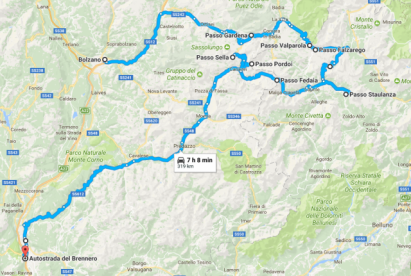 Il ritorno da Chiusa di Val Gardena a Reggio è di circa 287km,, trenta in più dell'andata..
