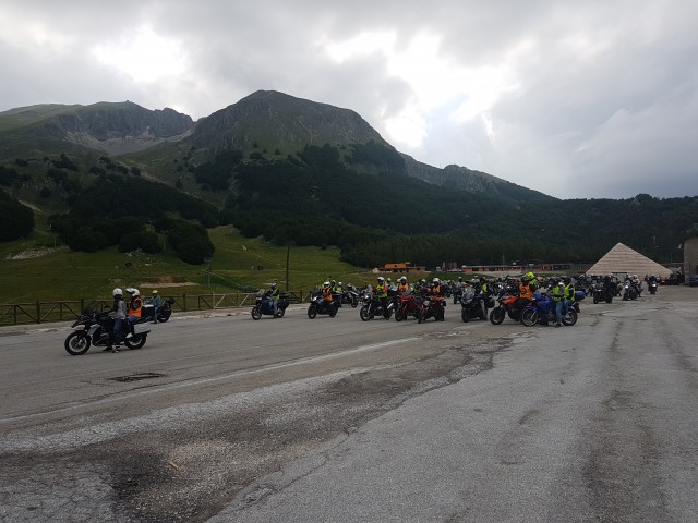 . Felici e rilassati, lontani anni luce dalla fatica della vita quotidiana torniamo alla base per far passare la notte che ci separa dal giro del sabato. Che dire del giro? Partiamo da un incandescente piazzale per godere del bel fresco delle montagne molisane. Un fiume di moto che si arrampica, sotto la custodia impeccabile delle staffette e tra paesaggi incontaminati. La mia sensazione, nuovamente, è quella di essere in un "altrove" magico. Sensazione confermata dalla sosta al belvedere: non sono su questa terra, sto guardando il paradiso. E le persone che ho vicino sono speciali, luminose (anche Sandro cercaguai