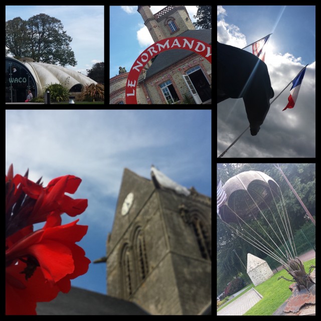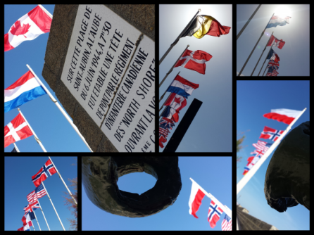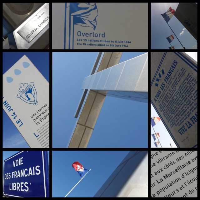 Ma appunto, come dicevo, quando hai finito di vedere quel filmato al cinema 360 di Arromanches, vuoi una cosa sola: i colori. Ed oggi io ne ho tanti. Perché oggi, c'è un sole da favola a riscaldarmi la pelle, il cuore. E me lo godo seduta sul prato di fronte all’Oceano. E il paesino di Arromanches è graziosissimo. Piccino con i suoi localini e negozietti. E cammini in discesa per arrivarci. E ti fermi a scattare ancora due fotografie: un altro carro armato fra le casette di fronte al mare. E quella bandiera che sventola sempre il suo centenario significato: Libertè, Egualitè, Fraternitè.