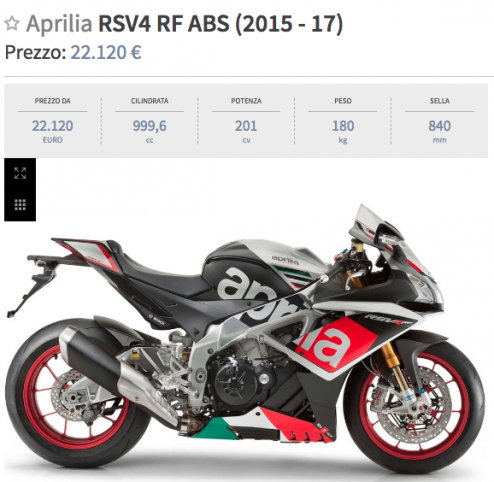 L'Aprilia RSV4 RF (ok, modello 2016, non 2017 che costa un filino in più):