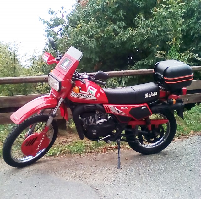 Ciao scrivo dalla provincia di biella, ma la moto viene direttamente dalla Schiranna presa a settembre del 1983. Quest'anno l'ho riverniciata, ho rifatto gli adesivi. Adesso è a riposo per 6 mesi, cosi pilusco testa pistone, luce di scarico, cambio olio e rivernicio ammortizzatori e forcelle. Sono riuscito a trovare anche le guarnizioni da sostituire. A risentirci