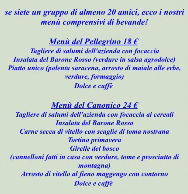 Se siete vegetariani/vegani e/o avete determinate intolleranze, avvisatemi qui perché siete esclusi dalla scelta del menu e deciderete in loco cosa ordinare.