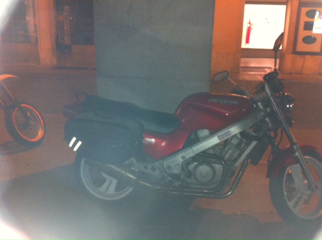 nel frattempo...una sera di queste...girando alla notte bianca di Udine, seminascosta dall'oscurità, da una colonna e dalla folla di gente, il mio sguardo riconosce il fanalone e la magniglia della "mitica delle mitiche" e sotto un portico davvero poco illuminato trovo la sorella gemella della mia "principessa" prima della cura a cui l'ho sottoposta...