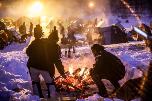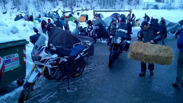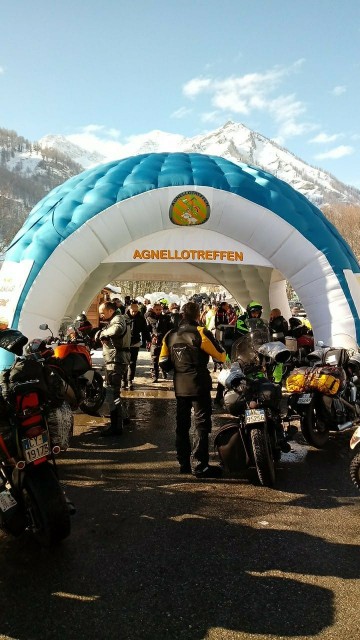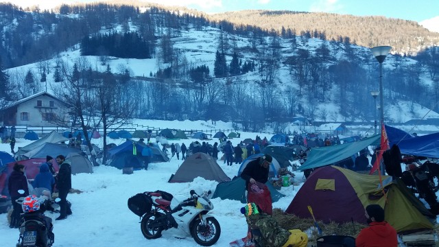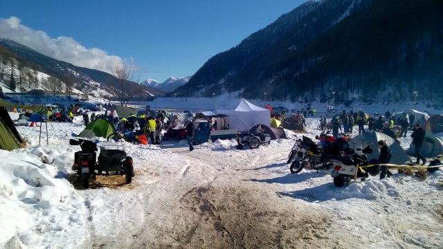 Da qui in poi, dopo un leggero frastornamento dovuto alla presenza di centinaia di moto e migliaia di persone comprese famiglie, bambini super eccitati e cani, tutto davvero stupendo con moto assurde cariche all'inverosimile, moto con gli sci e gente bizzarra che solo ai raduni estremi si posso incontrare.