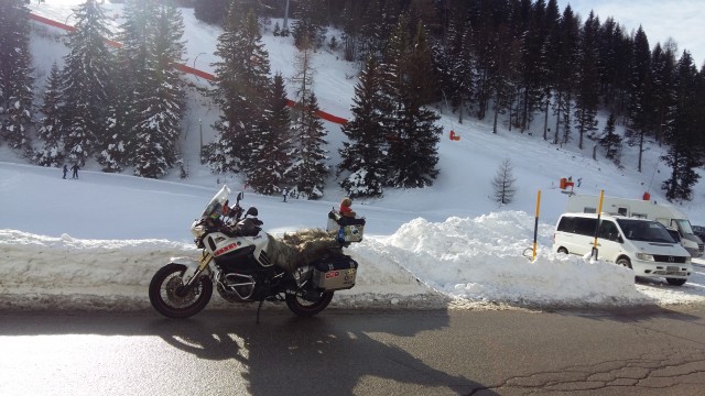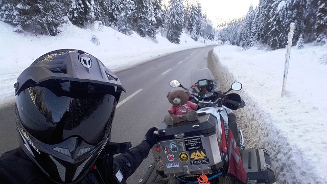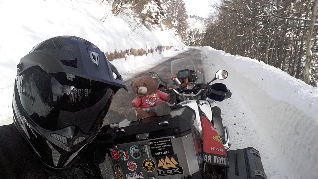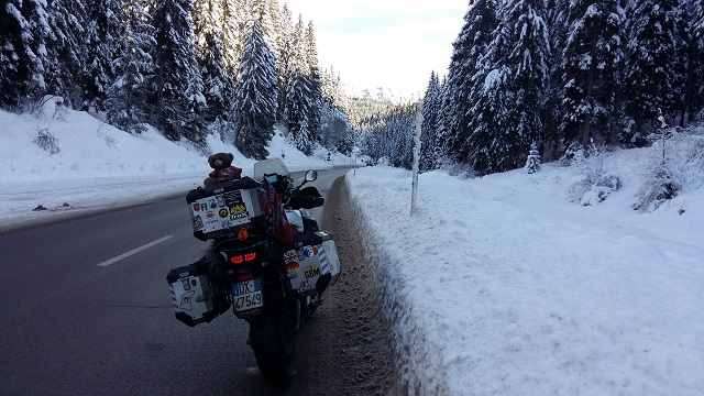 Non faccio in tempo a riprendere la marcia che la strada si fa innevata…