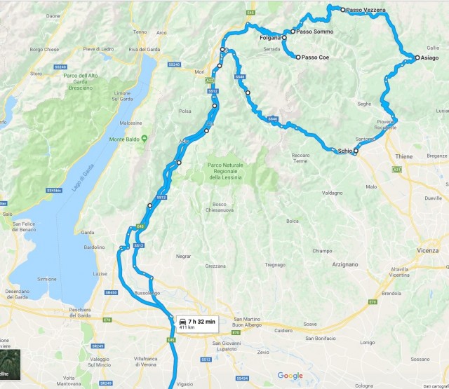 Da qui mi dirigo ad Asiago e poi a Schio. Da qui, prendo la strada che, passa per Valli del Pasubio mi porterà a Rovereto.