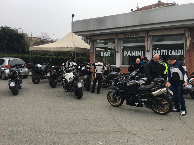 Siamo arrivati. Le moto sono già parcheggiate. Qualcuno già seduto a prendere posizione sul tavolino da pic-nic lì disponibile... Sono bellissimi anche questi momenti. Relax. Non mi tolgo la giacca, nè il paraschiena, nè tantomeno la mia maglia nera ribattezzata “pecora” dagli amici motociclisti... La verità è che ho freddo. Effettivamente rispetto a ieri, ci sono un po’ di nuvolette... Ma nulla di troppo grave.