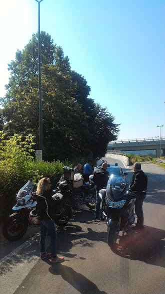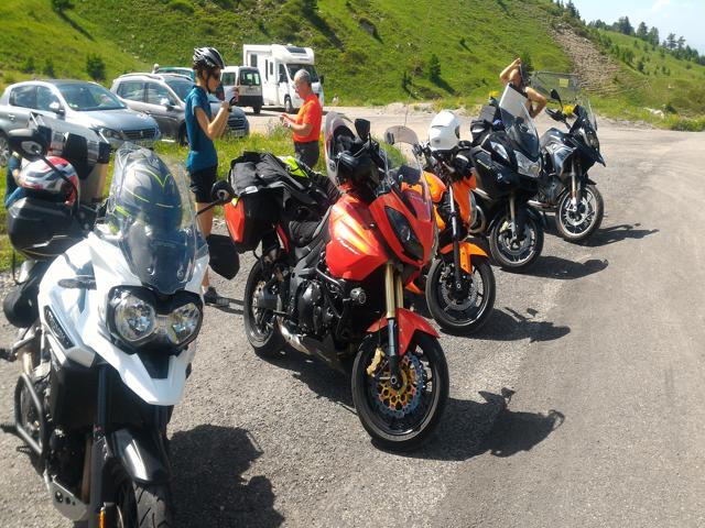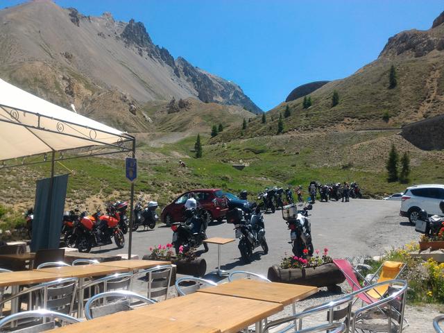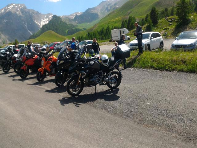 Arritati sul valico facciamo fatica a trovare parcheggio da quante moto ci sono