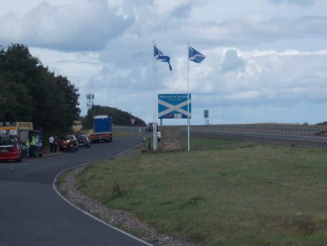 Il confine da questa parte di UK è segnalato bene. Con tanto di bandiere e targhe.