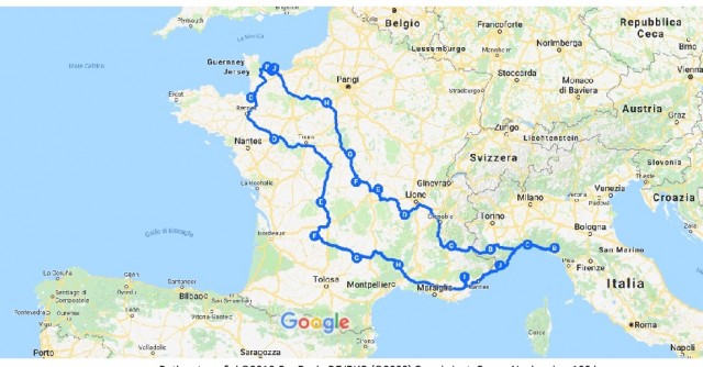 Circa 4.000 km per le strade e qualche autostrada della Francia. In Normandia in e con la "nostra" SR400 è stata un'esperienza bella, interessante e soprattutto eccitante ... alla faccia di tutti quelli che la considerano una "motina". Si è comportata benissimo, ogni giorno abbiamo percorso tappe di 200-250 km con un massimo di 350 km. In autostrada a 4000-4500 giri siamo andati dai 90 ai 110 km/h senza alcun problema. "Morale della favola" ... con la SR400 si può viaggiare e io dico anche bene.