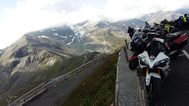 Qui tempo un poco "coperto" e temperatura decisamente frizzantina... Le moto con targa italiana sono veramente tante. Ovunque mi giri, sento parlare la nostra lingua... Cos'è abbiamo avuto quasi tutti l'idea del Grossglockner...??