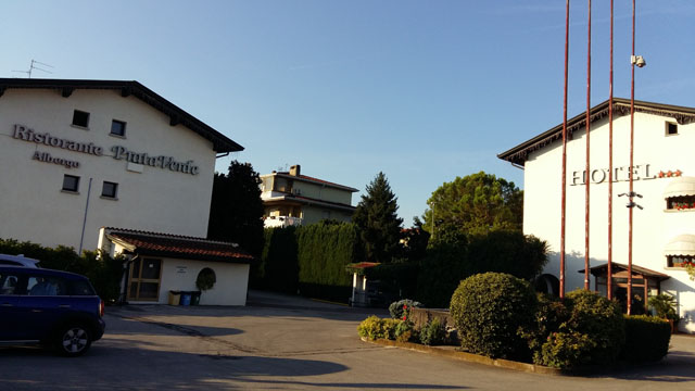 Ad un certo punto sembra di aver trovato la retta via. Arrivo in quel di Prata di Pordenone, dove leggenda narra esserci un hotel. Continuo a seguire le indicazioni stradali fino a quando, quasi fosse un miraggio, ecco l'insegna dell'Hotel Prata Verde.