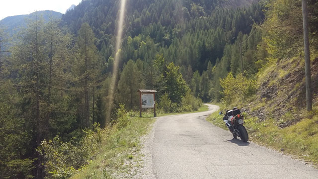 Dopo aver scambiato qualche chiacchiera con una coppia di Rovigo, mi rimetto in marcia, prima in direzione Cortina d'Ampezzo e poi Dobbiaco dove mi dirigo verso il confine di stato.