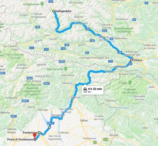 E' relativamente presto, quindi decido di dirigermi verso il confine e cercare alloggio per la notte verso Tarvisio e zone limitrofe.