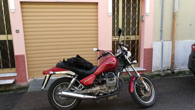 Una moto così classica e un'acconciatura così… punk?… Che strano accostamento…