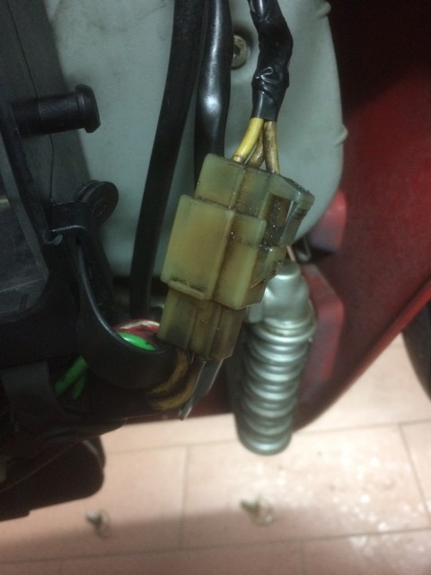 Ho trovato un connettore marcio: un 3 vie di colore bianco (in origine, adesso e' marrone) che si trova alla base destra della batteria, collegato con un elastico. Sapete a che cosa sono collegati quei 3 fili bianchi?