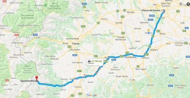Per il percorso in linea di massima si farà autostrada fino ad Asti, poi strada normale, inserisco una mappa del percorso con il link a puro titolo indicativo, tanto per vedere dove si va.