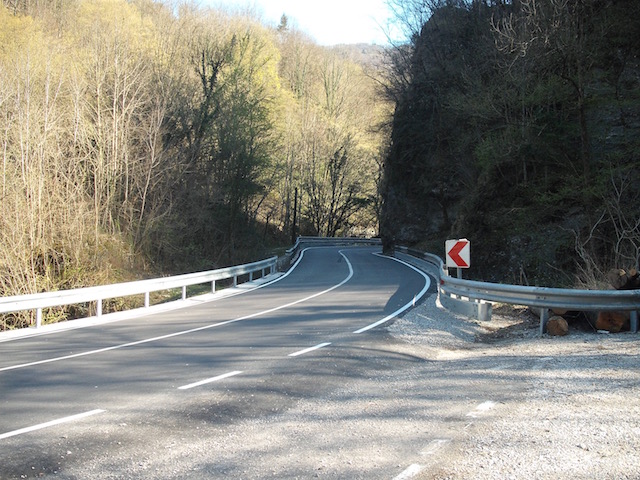 Passo Tanamea è meglio dalla parte italiana che da quella slovena, come fondo, ma dipende dalla direzione. Scendendo verso Zaga l’asfalto è fessurato e cedevole, nell’altro verso ci son tratti di bitume appena steso.