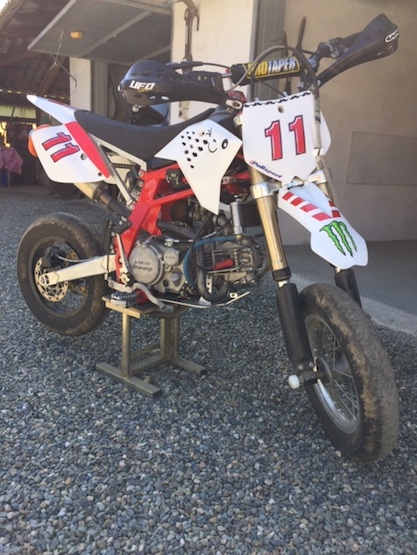 | Note: vendo Bucci motard credo uno dei primi modelli Bucci motore 150 YX scarico Leo Vince carburatore Keihin Japan mono Paioli ottima per iniziare. plastiche Ktm nuovo modello adattate | |