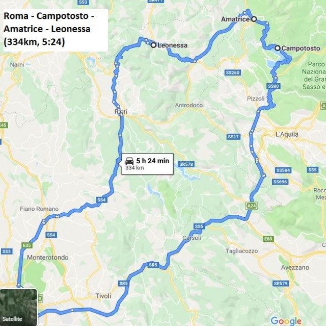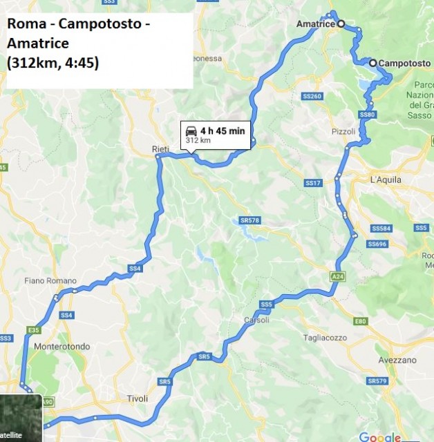 Roma - Campotosto - Amatrice - Roma (312km, 4:45)