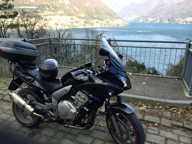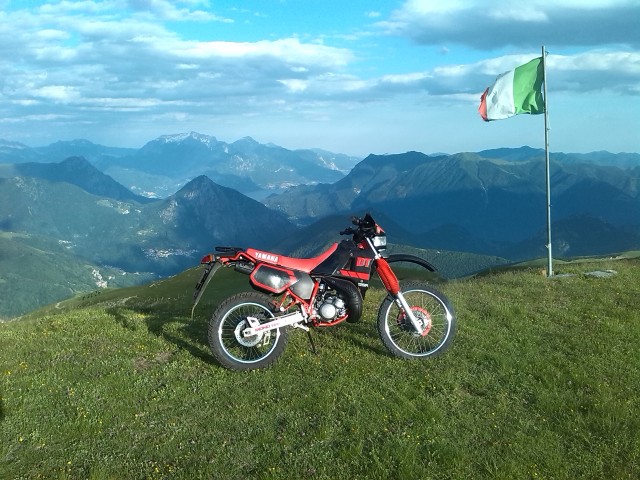 nuova piccola DT sul Gazzirola, prima uscita enduristica. In lontananza il lago di Como...