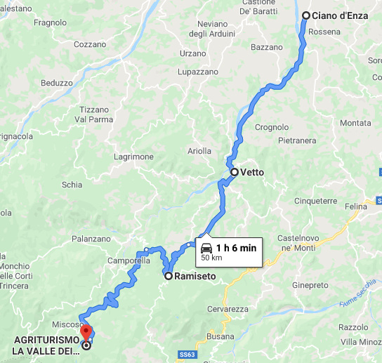 Ci si ritrova alle 9:30 presso il parcheggio di Ricci Casa a Ciano d'Enza (RE), la partenza sarà alle 10:00. Chi non partecipa al giro in moto può farsi trovare al punto dell'aperitivo in piazza "Piazza Ferdinando e Francesca Laghi" a Ramiseto (ore 11:30) o direttamente all'agriturismo (ore 12:30).