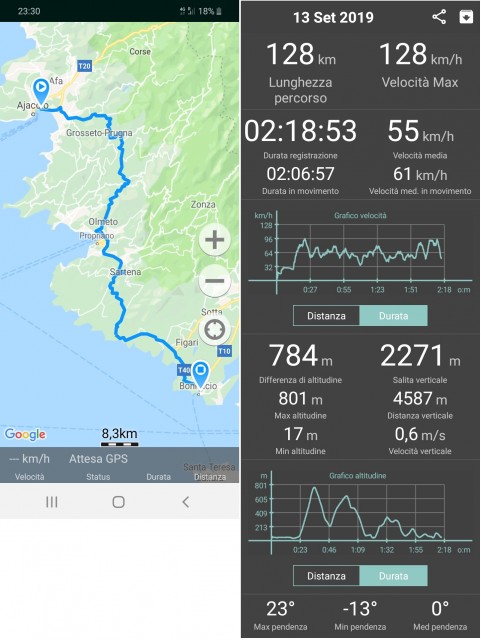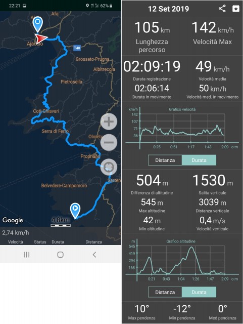 Facciamo in parte un pezzo di strada già fatto in mattinata, poi verso Propriano, ci spostiamo su strade meno "battute". Talmente poco battute che, ad un certo punto, ci chiediamo dove cavolo siamo finiti...