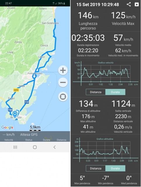 Quasi sfiorato il paese di Coti-Chiavari, sbucheremo poi vicino alla Plage D'Argent, dove eravamo stati qualche giorno fa. Da qui, puntiamo dritti al supermercato con il buio che ha già fatto capolino.
