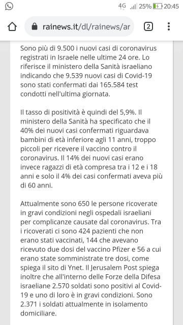 se controlli bene, in UK la percentuale di popolazione che ha completato la vaccinazione è la stessa nostra, circa il 65% (dati aggiornati ad oggi). Hanno tolto ogni limitazione dal 19 luglio, hanno riaperto le scuole prima di noi, hanno un clima infame per cui anche d'estate vivono al chiuso, eppure non è successo niente di tutto quello che i vari parrucconi gli avevano pronosticato... ricordi la lettera firmata da 4000 scienziati che gli hanno gufato tutto il gufabile? Gente che ora dovrebbe andarsi a nascondere, altro che insegnare all'università