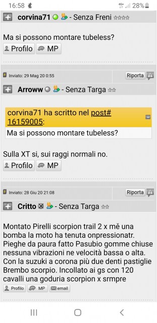 Amici secondo voi vale la pena cambiare cerchi in lega con quelli a raggi per montare tubeless? Ho una 1000 2018 dl ( non xt) con cerchi lega neri su moto nera. Se volessi montare cerchi a raggi per mettere pneumatici tubeless dovrei per forza mettere quelli gialli? Peraltro orribili su moto nera. Oppure ce ne sono anche neri p argento? E...secondo voi ne vale la pena?