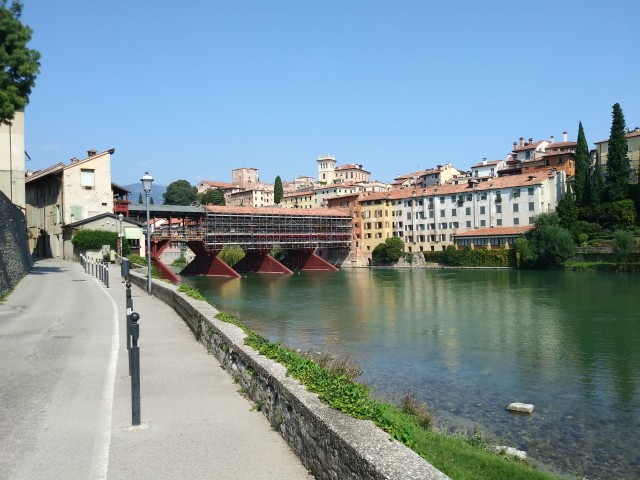 Da Marostica ci spostiamo a Bassano del Grappa, un giretto per la città con passaggio "obbligato" sul ponte degli Alpini, peccato sia in ristrutturazione. Vista l'ora ci rifocilliamo giacché, nei pressi del luogo dove abbiamo lasciato le moto troviamo un bar che pubblicizza bruschette ai funghi e Asiago vecchio.