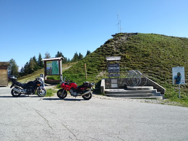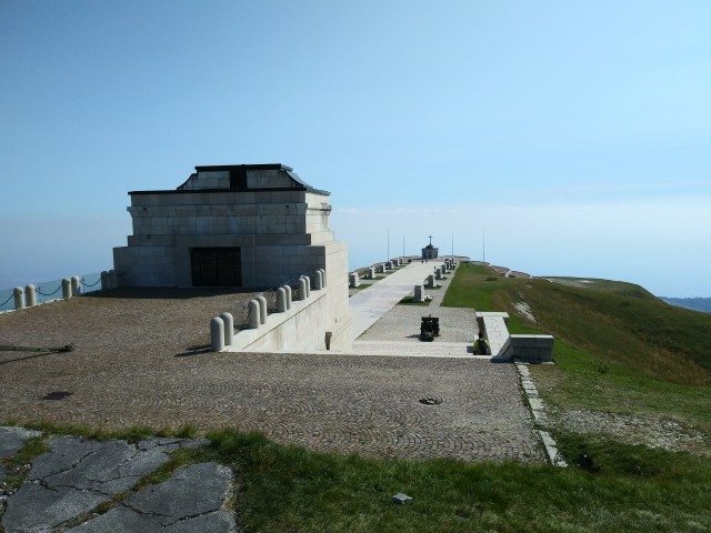 Saliamo verso il monte Grappa, incontriamo il primo passo di giornata (Sella di Campo Croce, nulla di che) e, giunti in cima, visitiamo il sacrario che, con i quasi 23000 caduti lì sepolti di cui quasi 20000 ignoti, fa riflettere sull'orrore della guerra e sul tributo in vite umane che ha chiesto alle nazioni coinvolte.