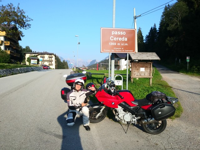 Ci dirigiamo verso il passo della Baia, ci aspettiamo un tratto sterrato (almeno così lo riportava google maps) ma scopriamo, piacevolmente, che l'intera strada che scende verso Arina è stata asfaltata. Passando per Lamon torniamo sulla strada del Passo Rolle che dopo pochi chilometri abbandoniamo diretti invece al Passo Cereda.