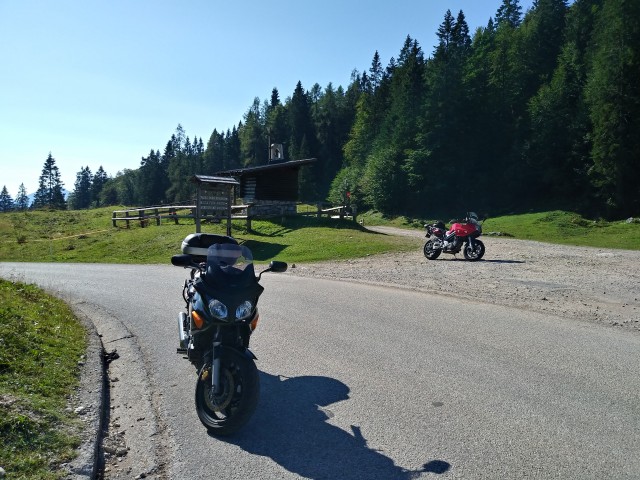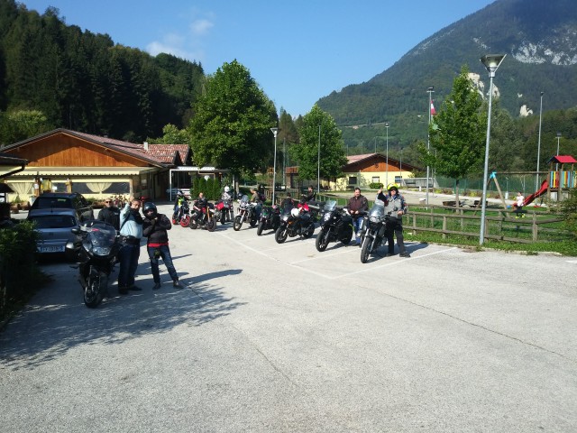 ) dove avremmo potuto mangiare qualcosa, scoprendo che in paese praticamente non c'è nulla, nel paese vicino raggiungibile a piedi il ristorante osserva il giorno di chiusura, un locale qualche chilometro più lontano non risponde al telefono (scopriremo l'indomani che è chiuso probabilmente in modo definitivo) e che non ci resta altro che inforcare le moto e scendere a Lozzo.