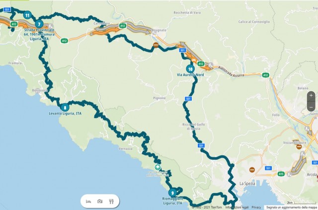 vorrei fare un percorso per le cinque terre da visitare in moto.