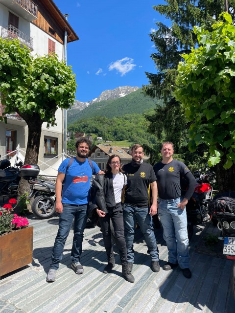 ) è stato possibile bere e rinfrescarsi in continuazione grazie ai torrenti di acqua gelida sparsi un po' ovunque. Nel frattempo il gruppo comincia a sciogliersi perché ognuno ha esigenze diverse ma del resto il rientro era libero. I temerari della crono scalata, una volta tornati a valle e dopo aver intrapreso una piccola partita a frisbee, risalgono in moto e cominciano il lento rientro (abbastanza stanchini) con ultima sosta refrigerante al Mc Donald di Sondrio dove il sottoscritto ha finalmente mangiato