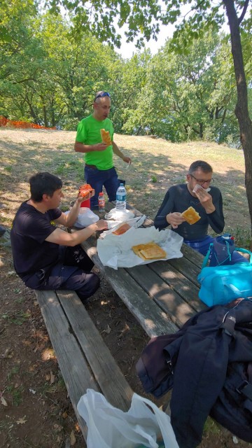 Dopo i saluti di rito Bastian ci porta in riva al lago, non ricordo il nome, dove c'è un'area picnic e dove ci facciamo la focaccia di Danmir.